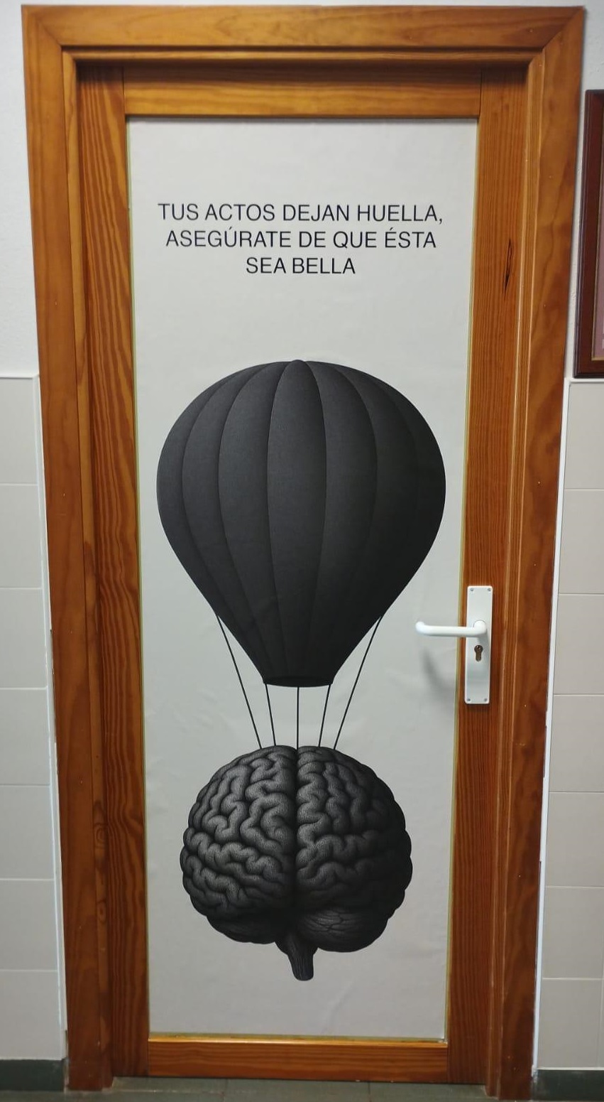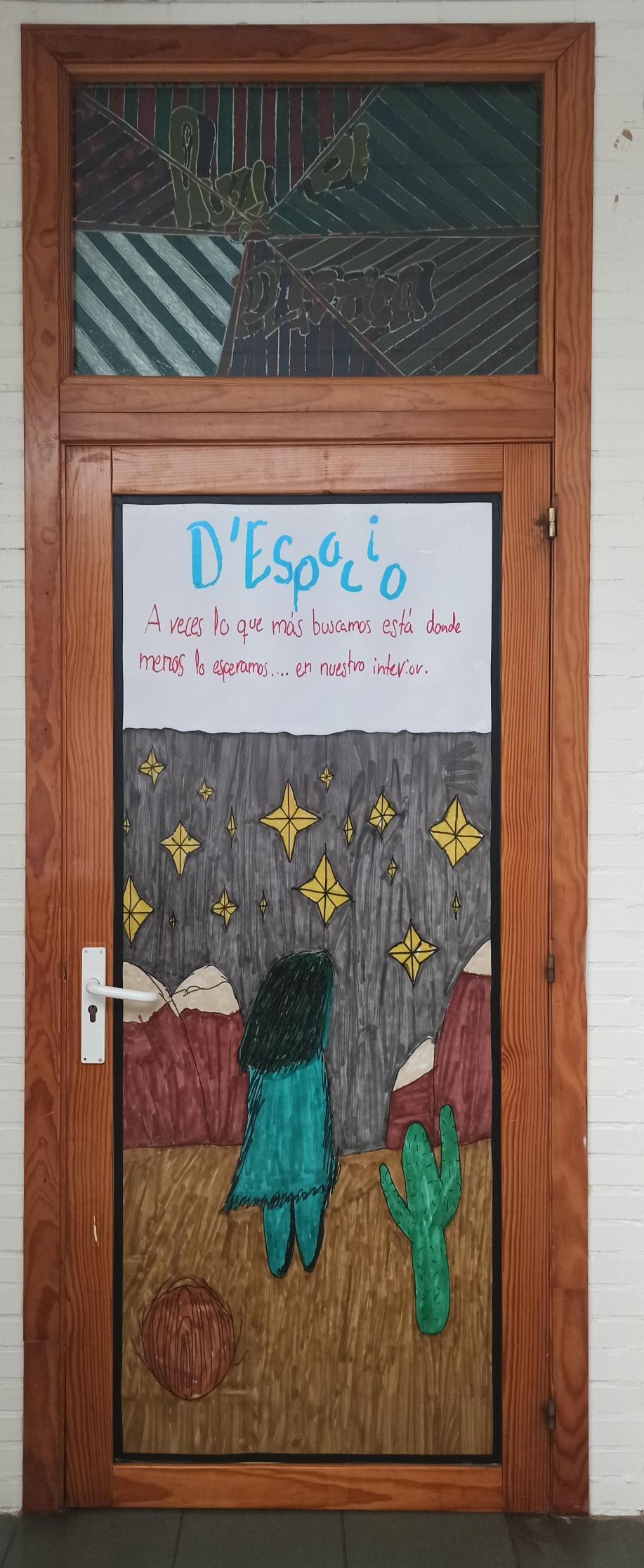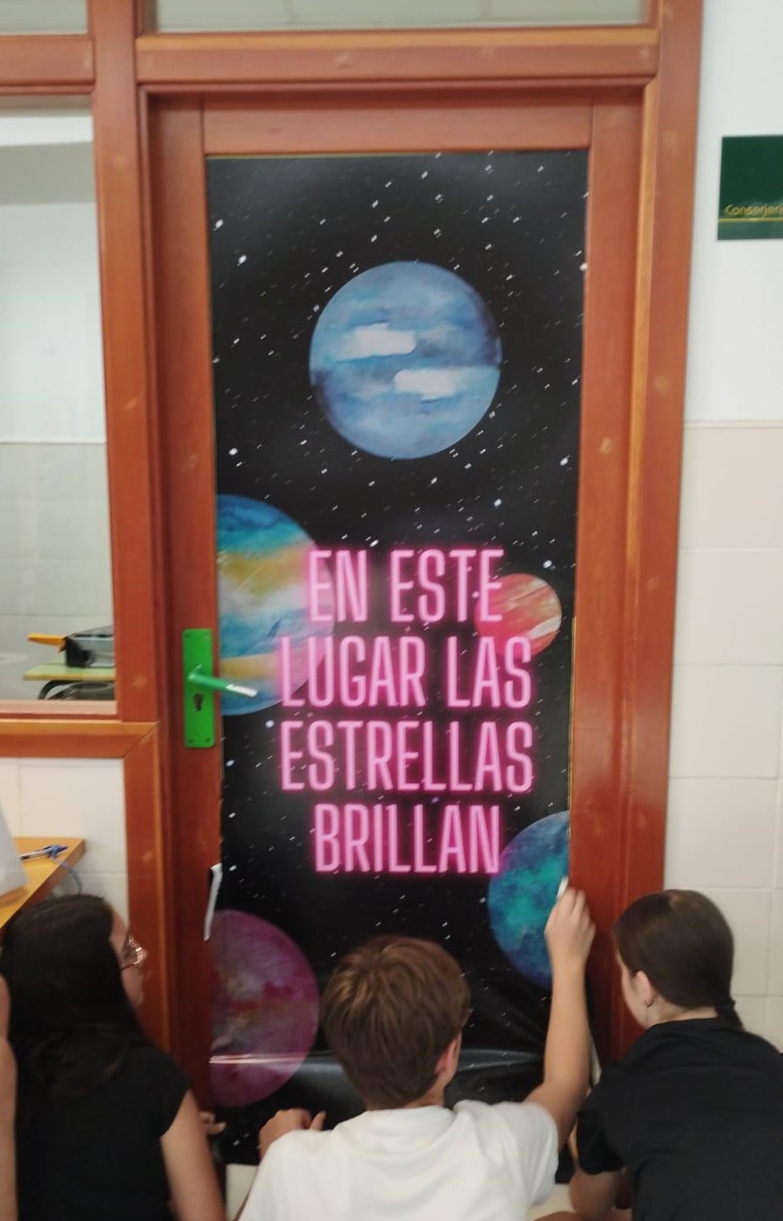 Vinilos colocados en las puertas del instituro sobre “D´Espacio”. Intervención en el espacio del instituto.