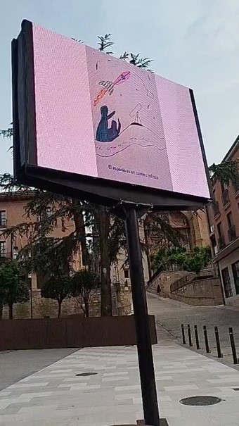 Proyección de los proyectos realizados por los alumnos de 1º Eso en las pantallas públicas de Navarrete y Cenicero. En colaboración con los respectivos ayuntamientos.
