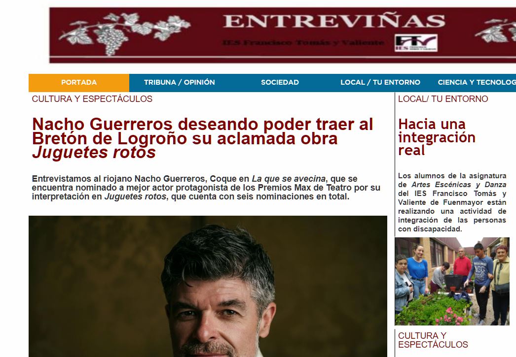 Este curso, dentro de la asignatura de Lengua castellana y Literatura los alumnos de 4ºB han participado en el concurso El País de los Estudiantes, promovido por el diario El País, llegando a la fase nacional como primeros clasificados en La Rioja. ¡Enhorabuena por el trabajo hecho Entreviñas! Aquí os dejamos el enlace a su periódico digital a ver qué os parece.