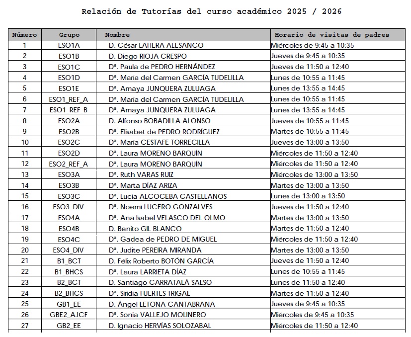 Horas de atención a familias HORARIO DE TUTORES RESTO DEL PROFESORADO Descargar el horario de atención a familias para el curso 2025/2026 (PDF)